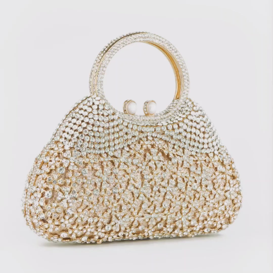 Our Glistening Glamor Handbag embodies the best of the extra-luxurious. Crafted from high-quality polyester with PU leather lining, this beautiful bag features a round handle & a cover studded with sparkling shimmering rhinestones in a lovely flower display.