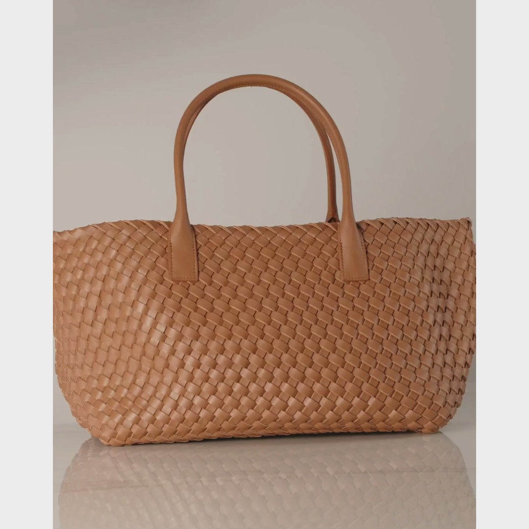 Embrace style with the intricate basket weave design that adds a touch of artisanal charm to your ensemble. The large capacity of this tote bag ensures that you carry all your essentials, making it perfect for any occasion. Its lightweight materials make it a breeze to carry. Now available in black, caramel, brown, and army green.